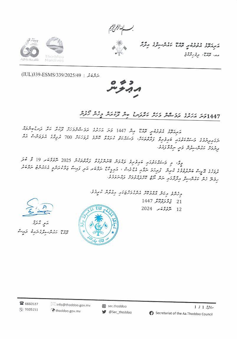 ރަމަޟާންމަހަށް ކަރާދަނޑު ދޫކުރުމާ ބެހޭ