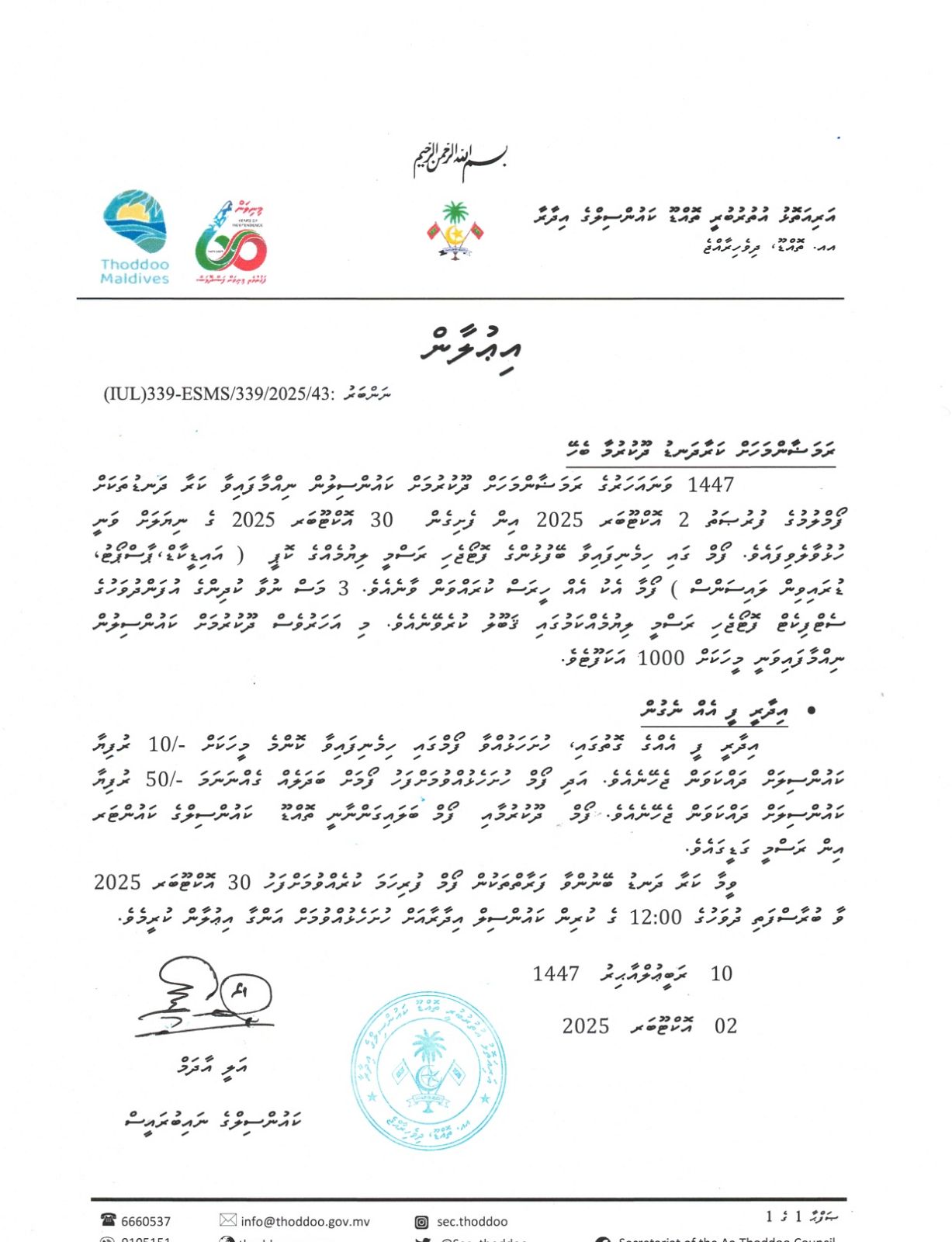 1447 ވަނަ އަހަރުގެ ރަމަޟާން މަހަށް ކަރާދަނޑު ބިން ދޫކުރަން މީހުން ހޯދުން